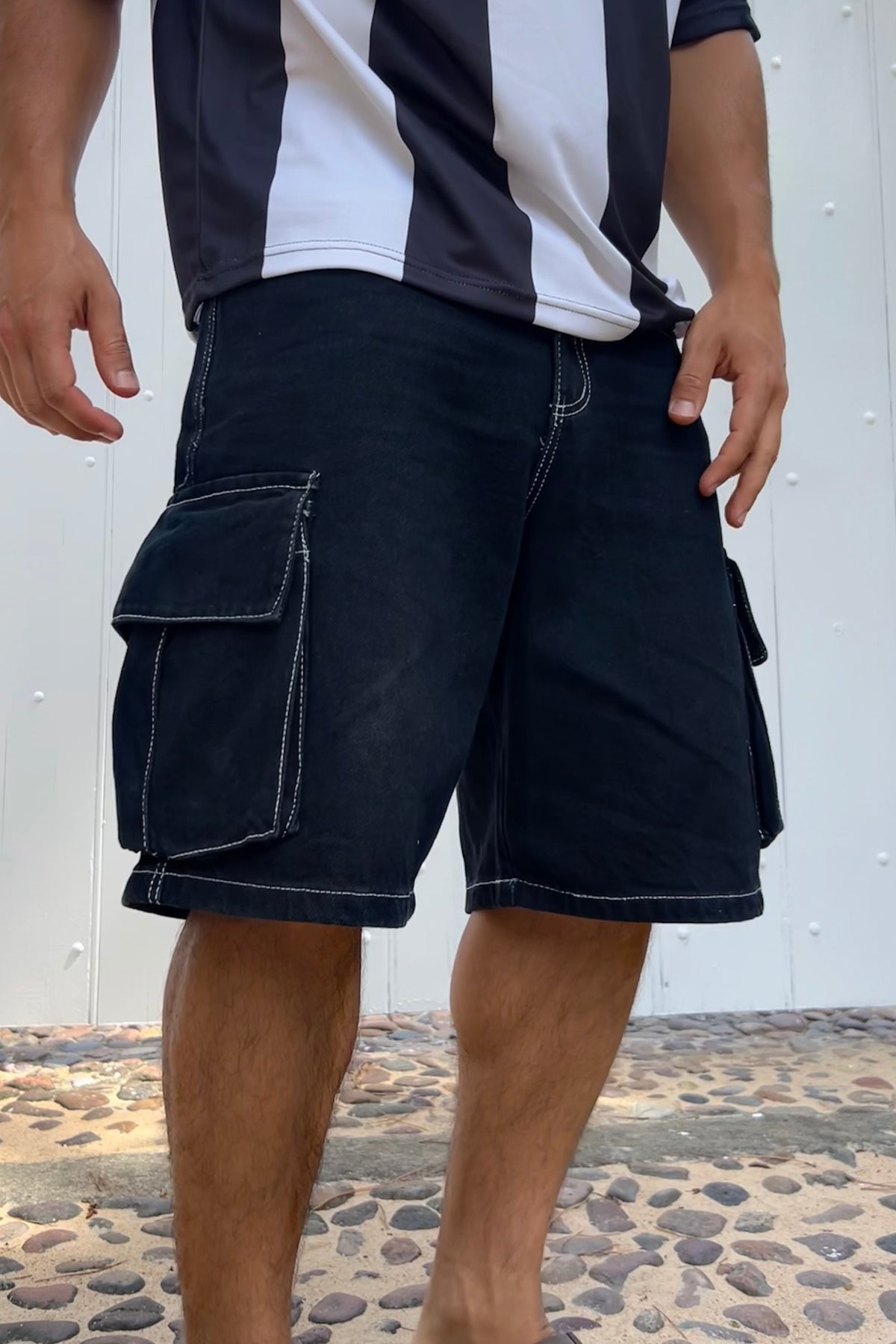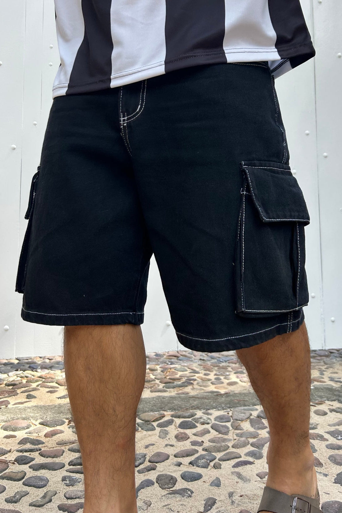 Bermuda Baagy Costura Blanca Break Negro